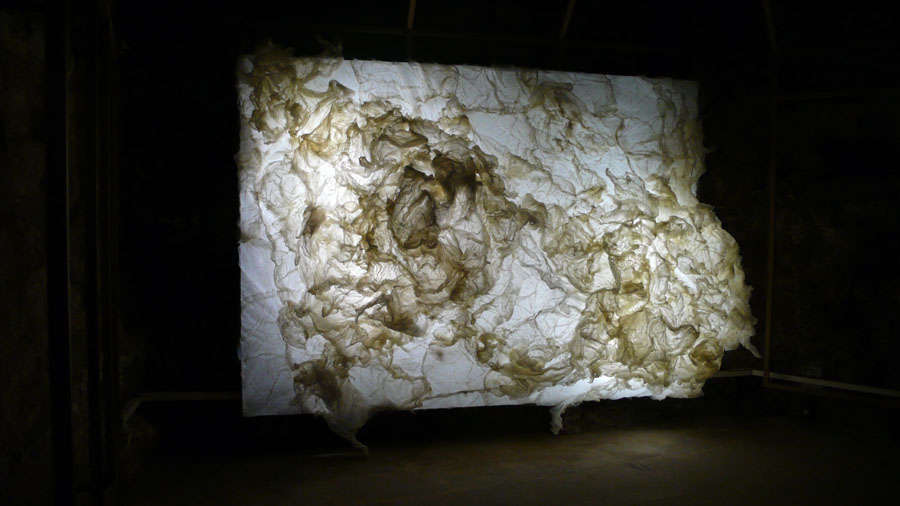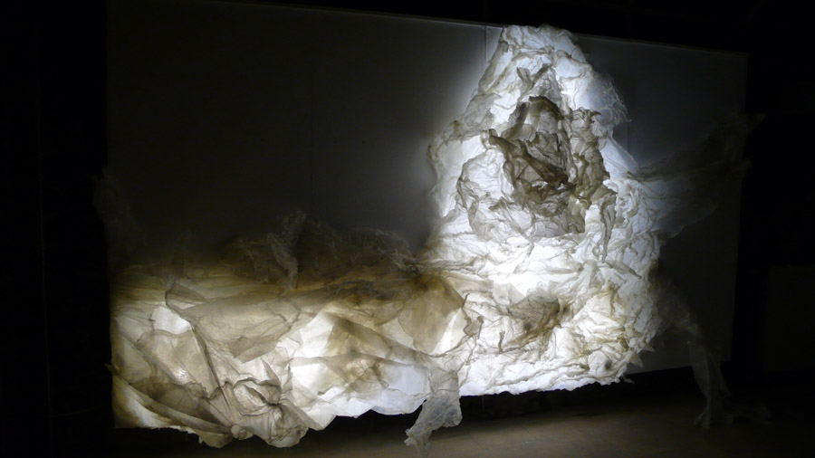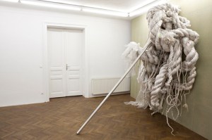 Sophie Hirsch’s solo exhibition Kijang Kijangan opened last night at Sewon Art Space, Yogyakarta. One free standing large scale installation sits within the space, billowing plastic intertwines with rusted steel scraps, creating the illusion of a caged cloud.