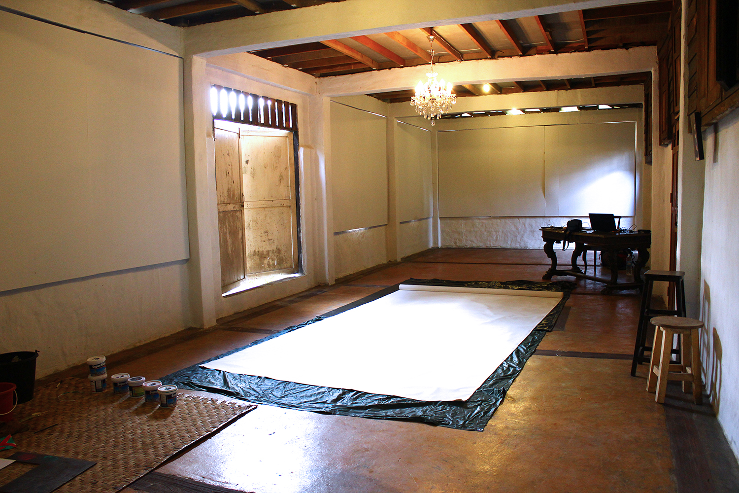 This Thai jungle studio featuring chandelier is my new workspace for the next month as I partake in the Ne’Na artist residency program in Chiang Mai, Thailand.