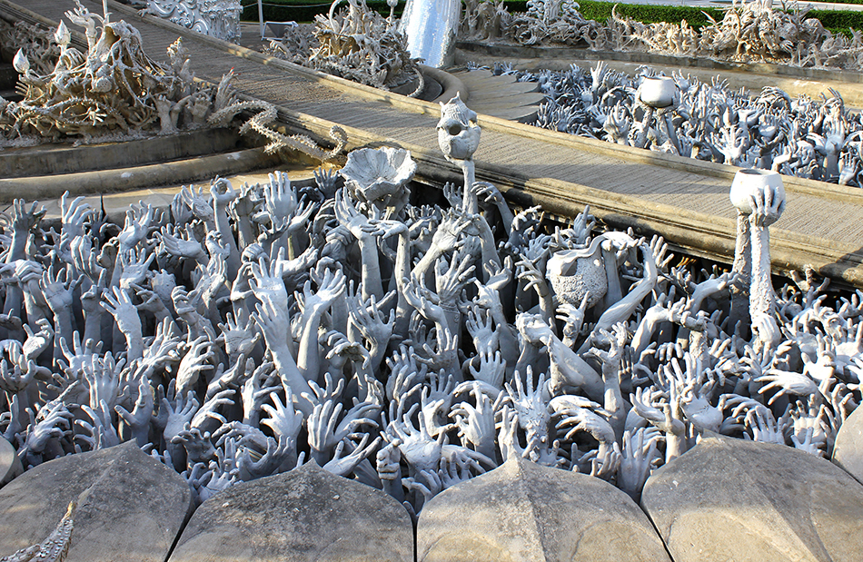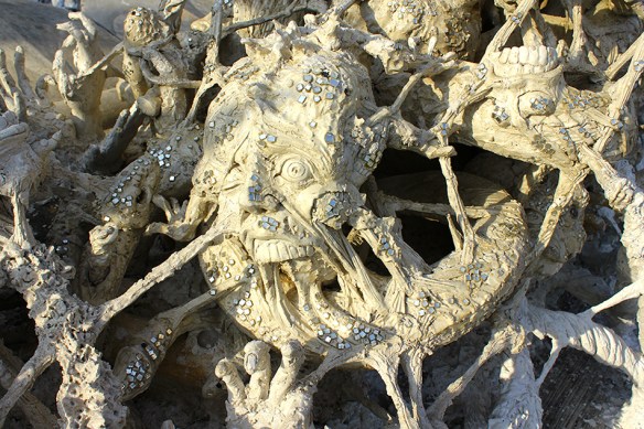 In awe over Chalermchai Kositpipat’s temple in Chiang Rai. The scale, detail and utter ridiculousness of this work is off the radar. Inside the walls are painted in fine detail with images of Buddhism, Hinduism, galaxies, nuclear war, MJ and Keanu Reeves.
